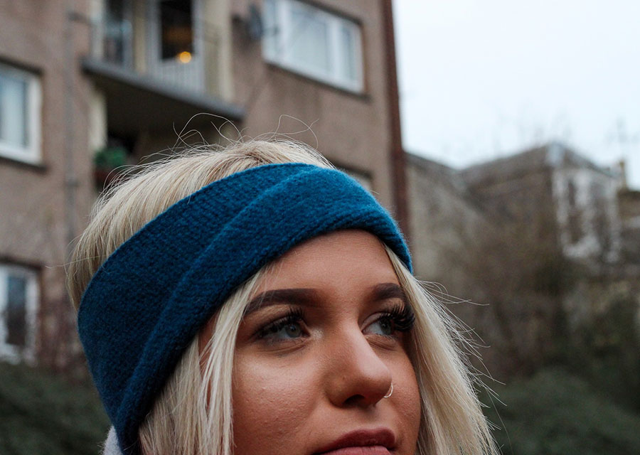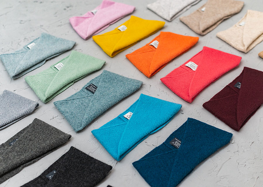 My designs are inspired by my love of brutalist architecture and pairing of bright and bold colours, and includes a range of knitted headbands, snoods, scarves and wrist-warmers.
